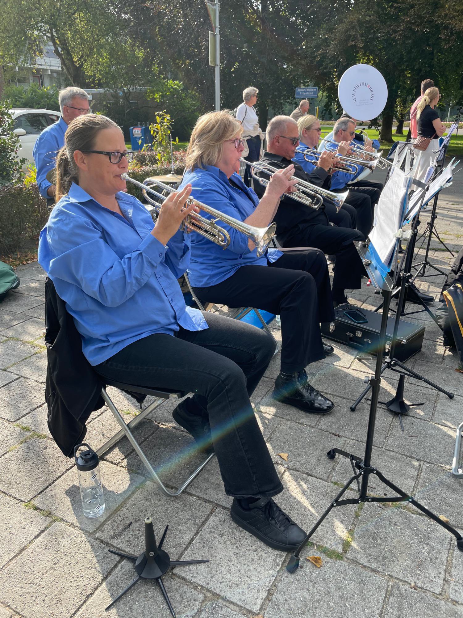 Afgelopen weekend trad New Rhythm and Brass op tijdens de 7 km van Martenshoek. Het was ideaal loopweer en zeker ook goed weer om muziek te maken. De band speelde eerst tijdens de ouder en kindloop en daarna verhuisde de band naar de Troelstralaan om de overige lopers aan te moedigen met toepasselijke muziek. Het volgende optreden is ook weer een sportief evenement. Op 11 oktober vindt de ‘4 mijl for you plaats’. Het blaasorkest is er dan ook weer bij.