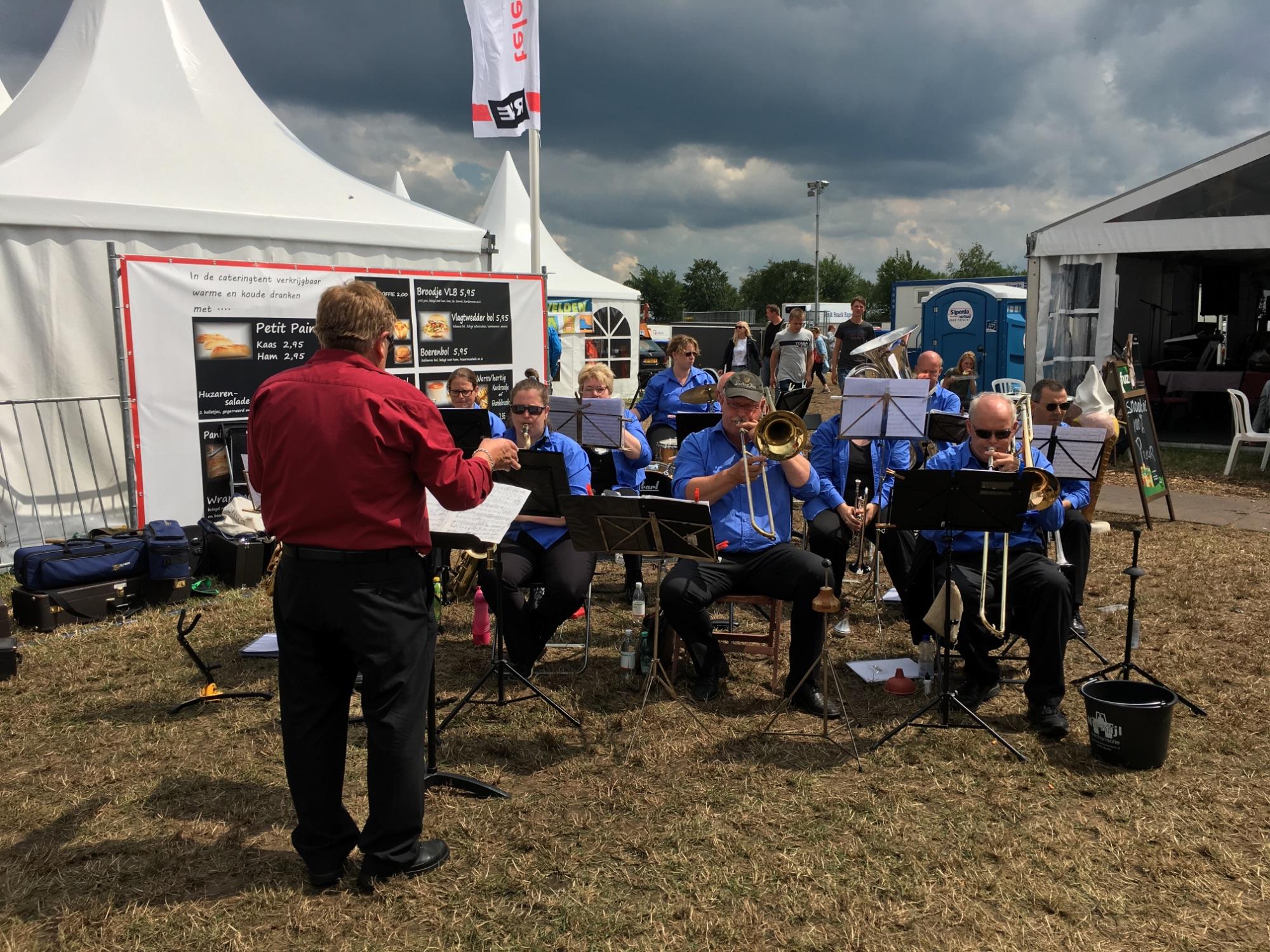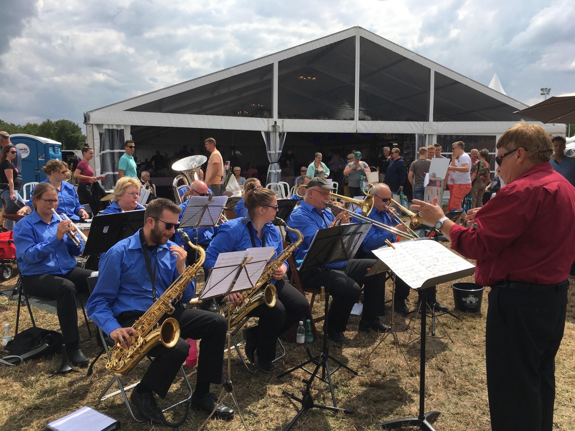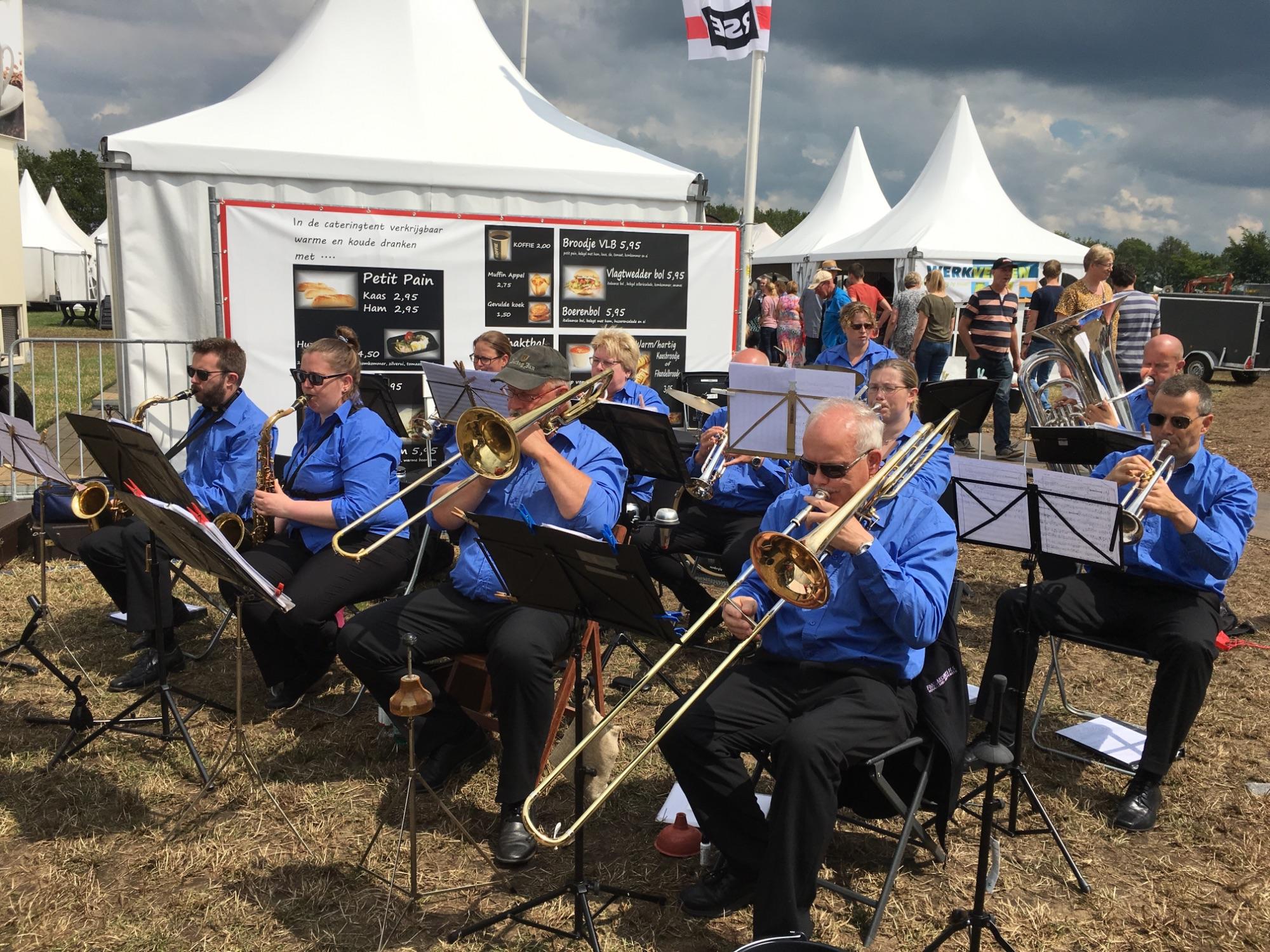 landbouwbeurs in Vlagtwedde. Het orkest speelde vlak bij een grote tent waar een Shantikoor zong en ook een orgelspeler/zanger. Tussen alle eet- en dranktentjes was het erg gezellig.