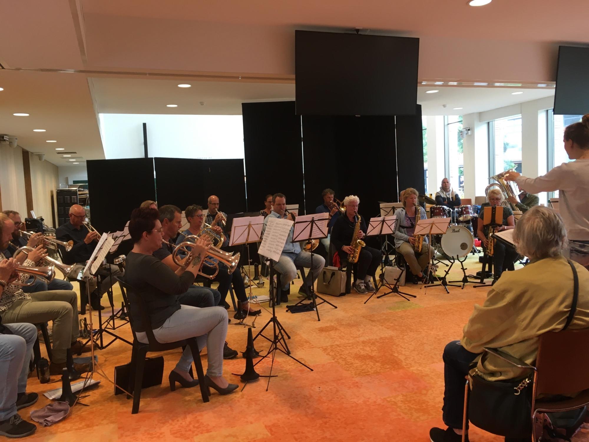 Vandaag hield het muziekkorps een open repetitie in de raadszaal van het huis van Cultuur en Bestuur van Midden-Groningen in Hoogezand. Allerlei culturele verenigingen presenteerden zich vandaag aan het begin van het culturele seizoen. Ten minste als de versoepelde corona maatregelen het seizoen weer een beetje toelaten. De vereniging is inmiddels druk bezig met het concert met Jan Henk de Groot, komende winter in theater Kielzog.