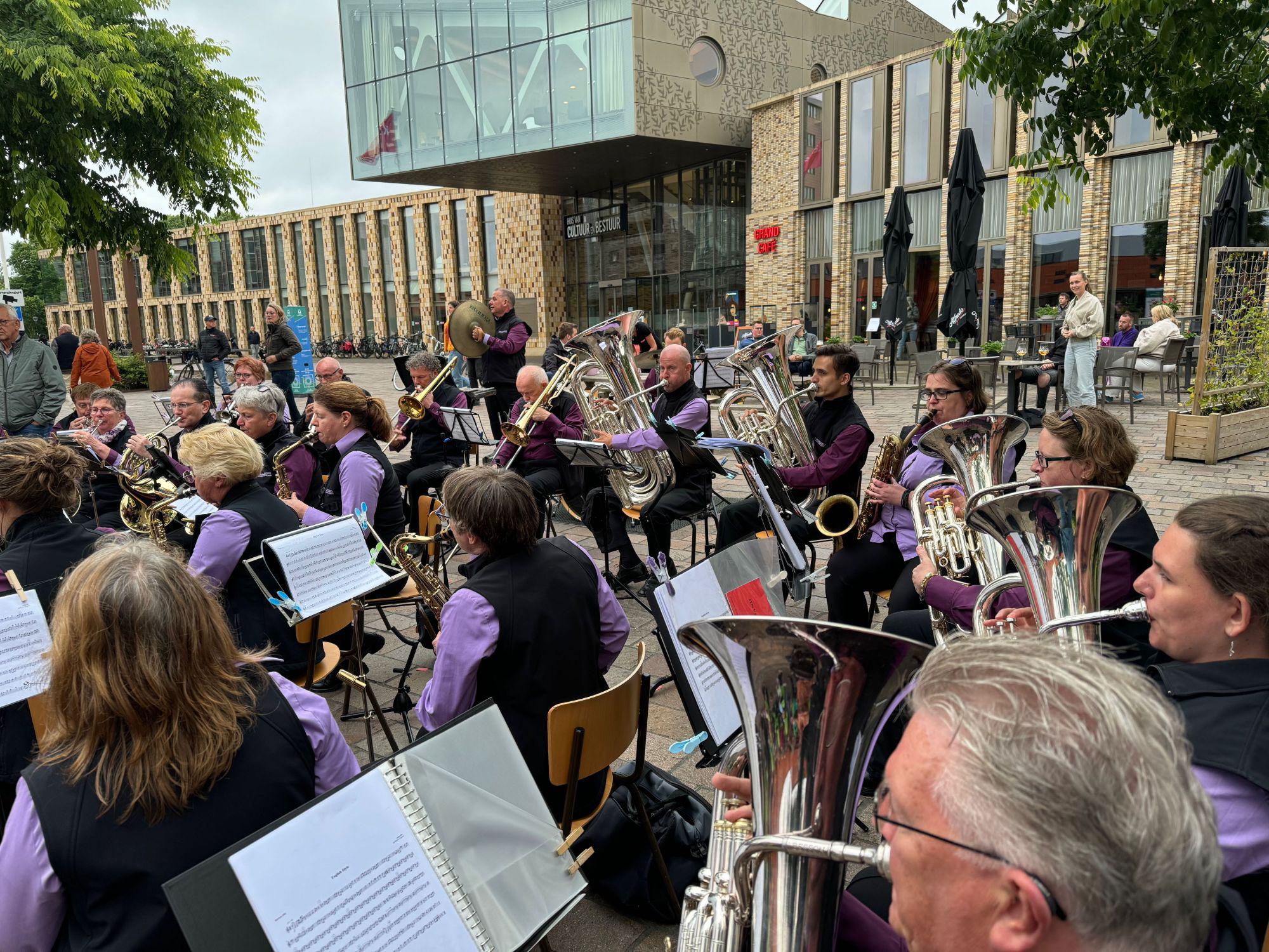 Gisteravond was de vereniging weer present bij het Huis van Bestuur en Cultuur in Hoogezand. Daar liep de route van de intocht van de avondvierdaagse langs en het muziekkorps zorgde weer voor gezellige wandelmuziek. Vier avonden hadden de deelnemers zich van hun beste kant laten zien en met deze feestelijke intocht kwam het evenement weer tot zijn einde. De regen dreigde af en toe te vallen, maar het ging allemaal net goed zodat het weer een leuke avond was voor iedereen.
