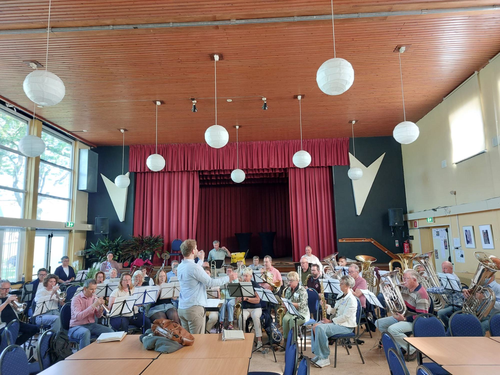 Afgelopen zaterdag vonden in het kader van ons jubileumjaar twee evenementen plaats. Overdag was er een play-in onder leiding van onze dirigent Heerko. Aan het einde van de middag was er een miniconcert voor belangstellenden en de deelnemers van de reünie die vroeg aanwezig waren. ‘s Avonds was er dus een reünie voor leden en oud-leden en aanhang van onze vereniging. De reünie werd voorafgegaan door een heerlijk koud buffet en tijdens en na dit buffet werden er fli